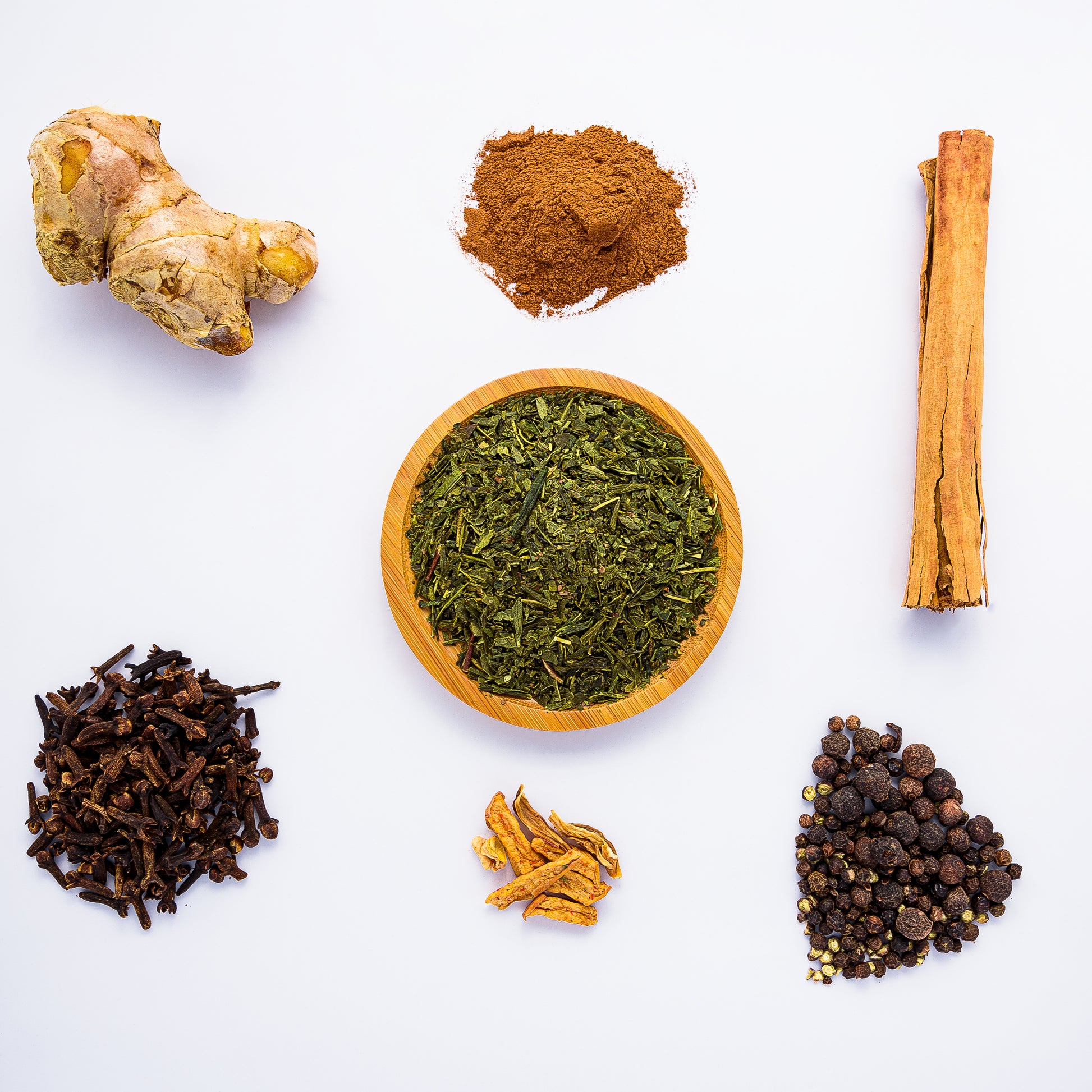 Incluye 250gr del té de tu elección y 50gr de cada una de las 5 especias.