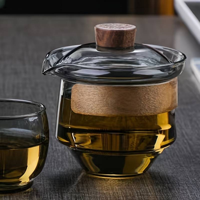 Descubre la armonía perfecta entre tradición y modernidad con nuestro Gaiwan Jarra de Vidrio con detalles de Madera.