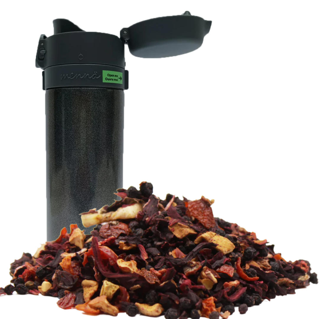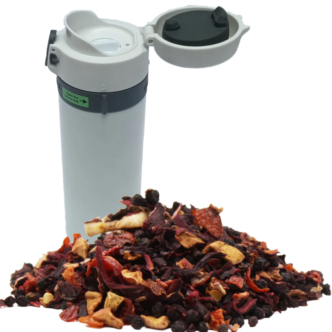 Elige el color de un Termo Infusor y el sabor de una Tisana frutal de sabor dulce y suave, ideal para disfrutarse en frío.