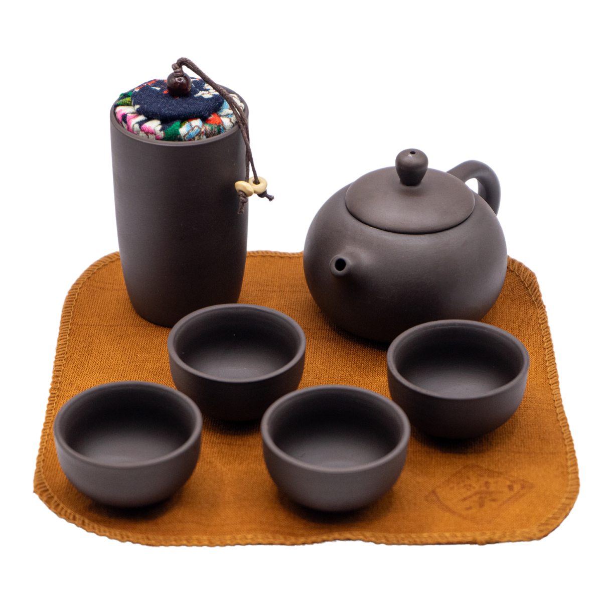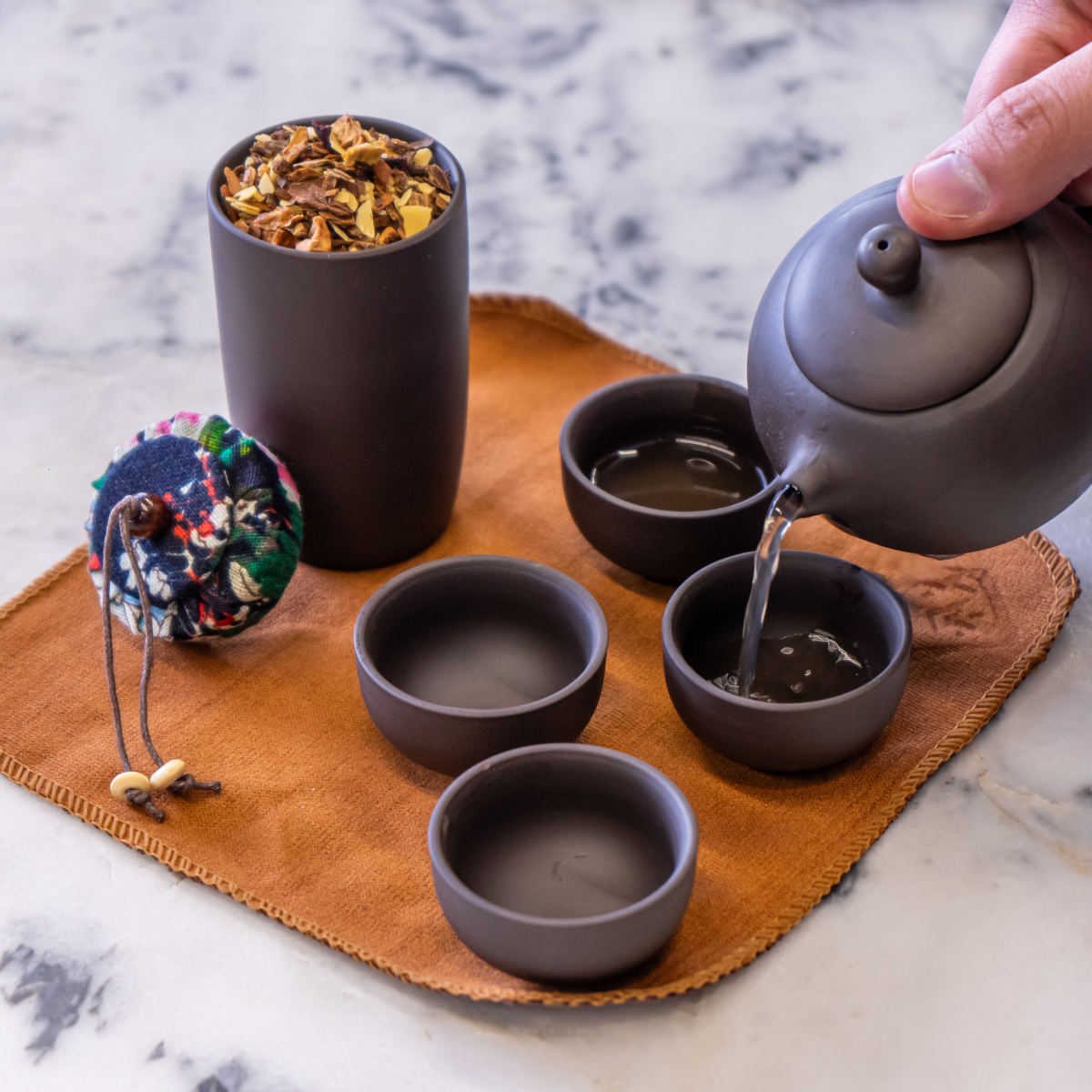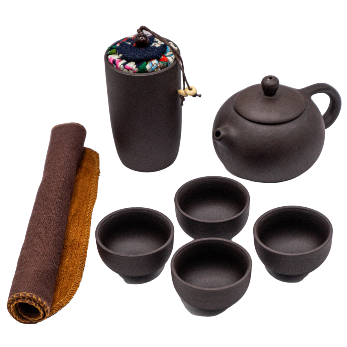 Set de Viaje con Tetera de Cerámica, Vasitos, Estuche y Mantel