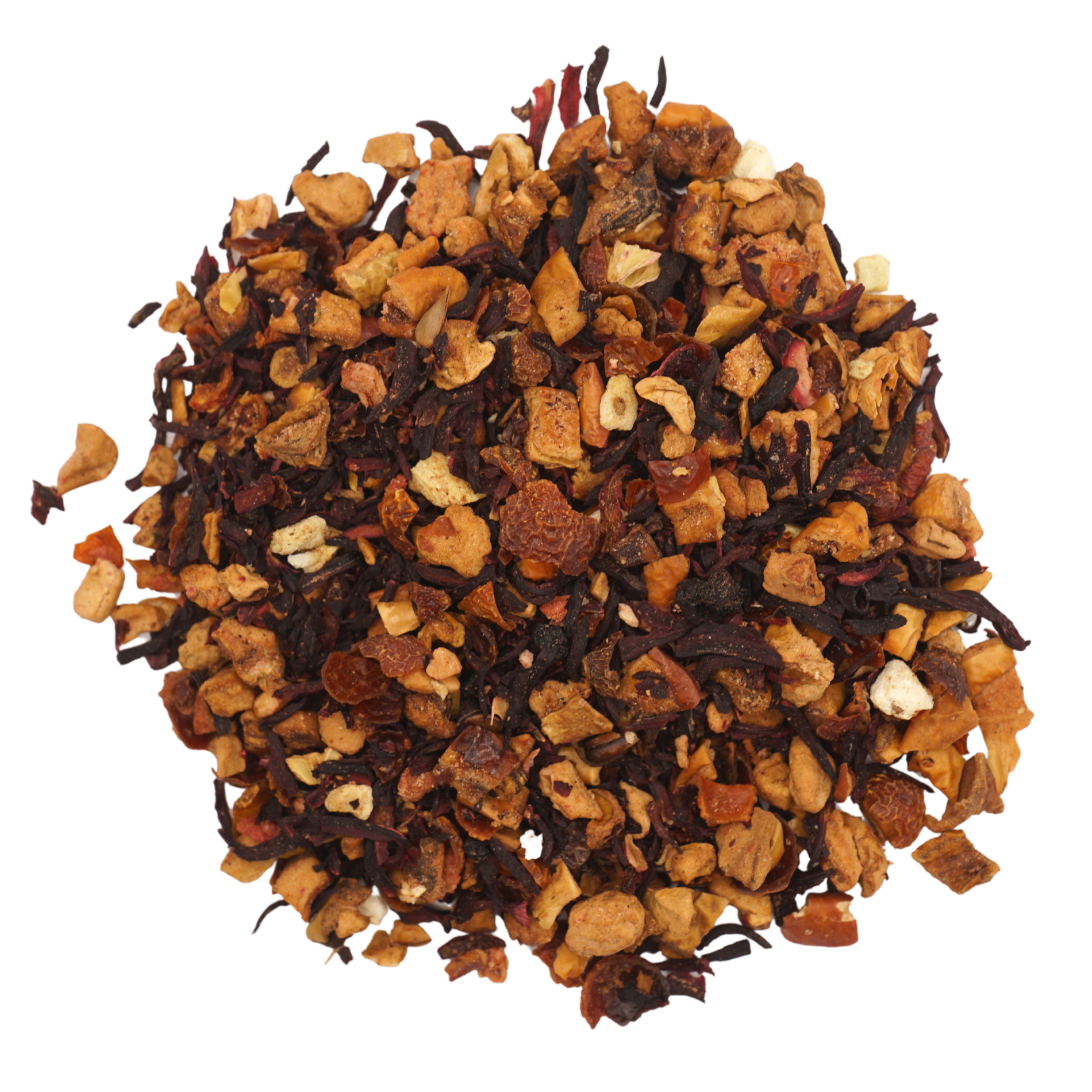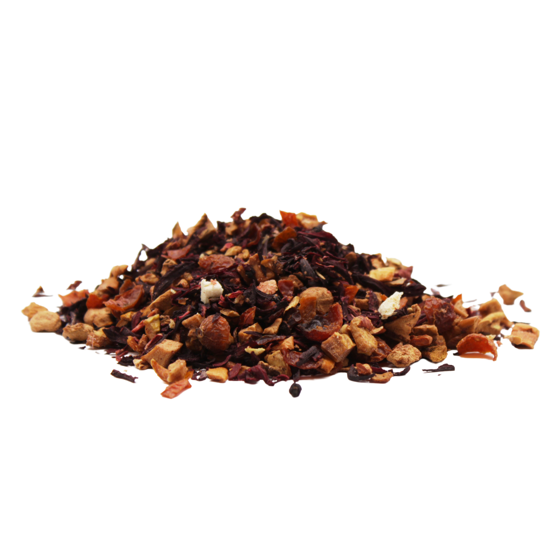 Una deliciosa combinación de estas frutas, que dan a esta tisana frutal un excelente sabor. Con trocitos de manzana deshidratada, Jamaica y sabor a fresa-kiwi.